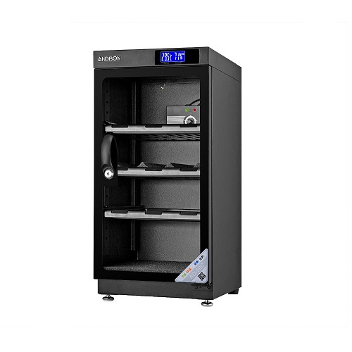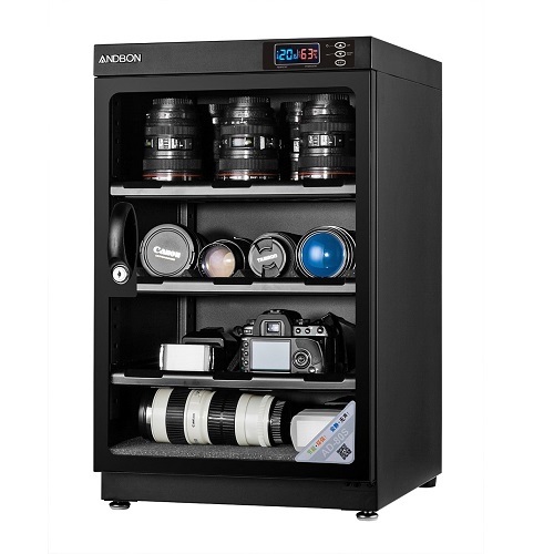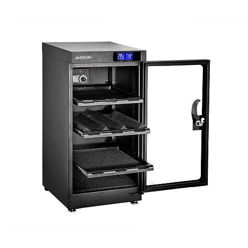 Protect your lenses, photographic and optical equipment, mobile electronics, and other valuable accessories from excessive moisture, dirt, and dust with the Andbon 50C Electronic Dry Cabinet. The cabinet’s fast-acting TE Cooling Wafer regulates the interior’s relative humidity from 35-60% to help prevent fungus and corrosion that can damage your gear. Humidity adjustments take place over a 1- to 3-hour period.