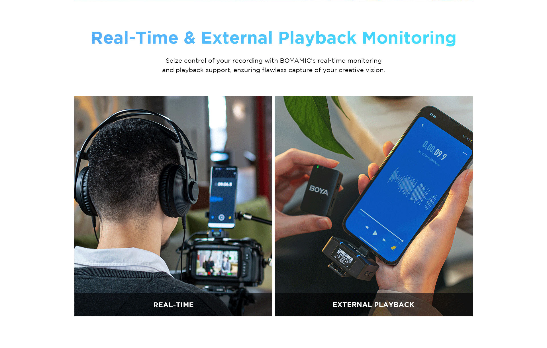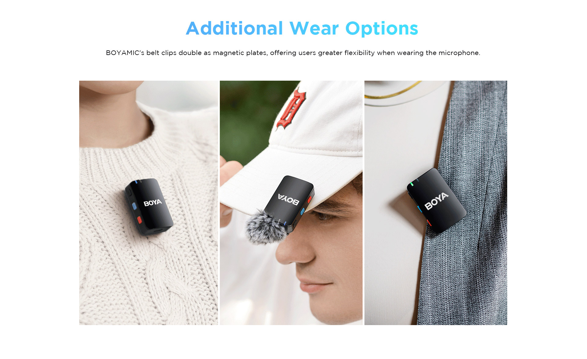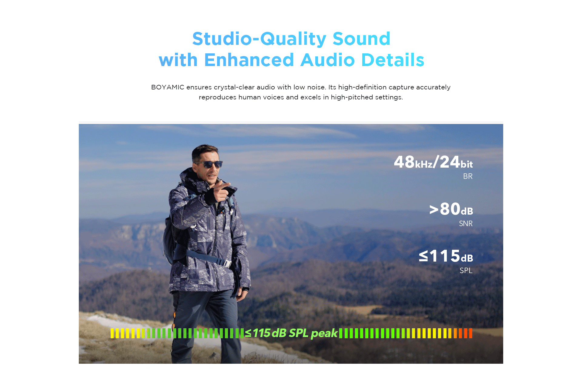 All the components of the BOYAMIC system can communicate to one another from up to 984.3′ away via line-of-sight 2.4 GHz technology. This means the BOYAMIC thrives in long-distance recording environments.