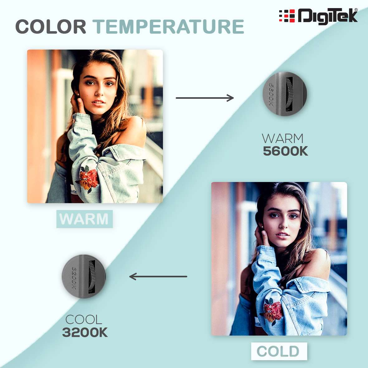 - Dual color temperature: The best thing with this LED light is it has a dual knob which helps you set white and orange light independently. You can have mixed light too. With uniform illumination brightness, this light LED-D520 B provides dual color temperature (3200k-5600k).