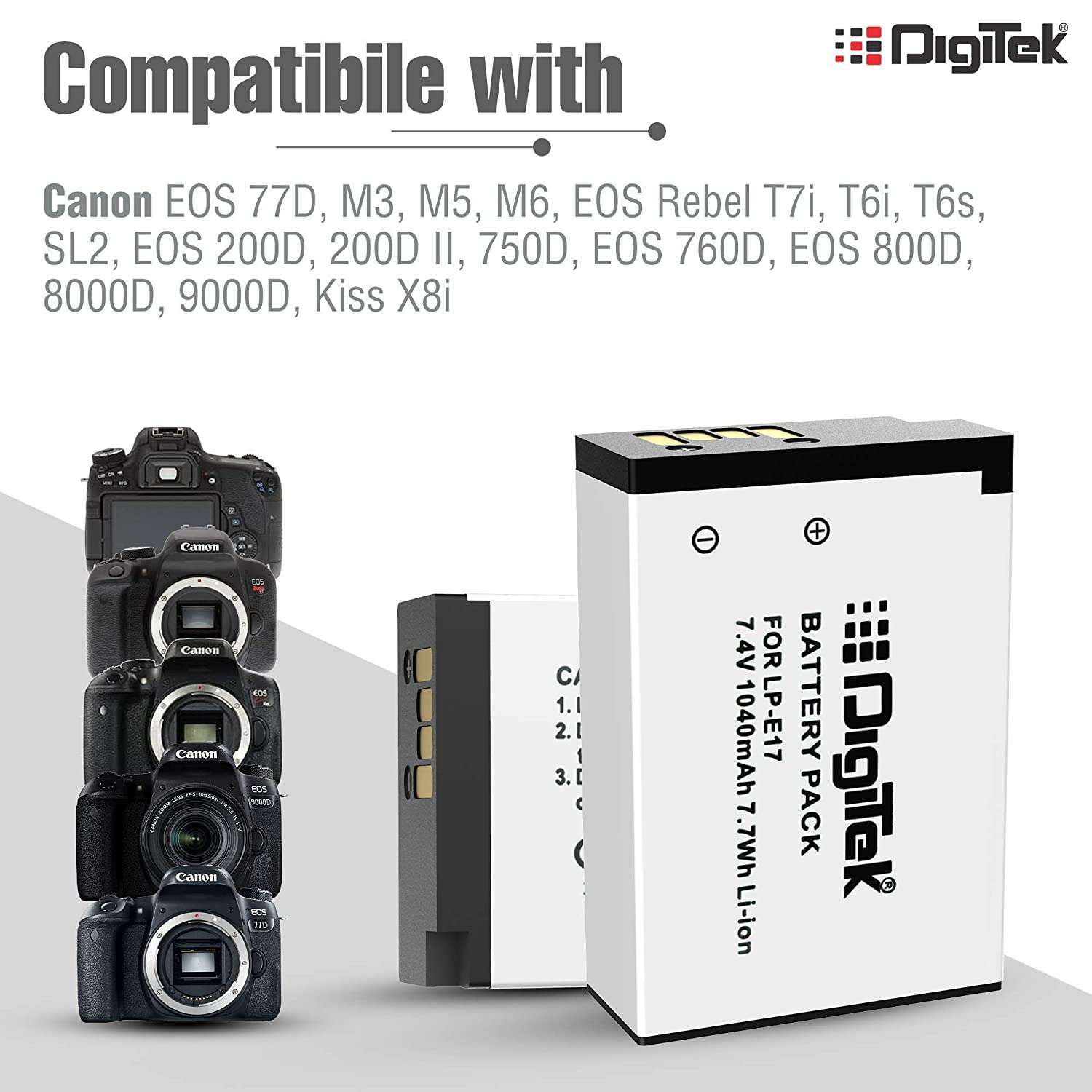- Digitek LP-E17 is a world-class battery specially designed for the Canon LP-E17 Camera. The battery is designed with top-notch precision for 100% compatibility with the original product in an international standard leak-proof structure.