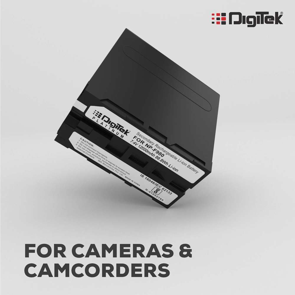 The Digitek Platinum Battery Sony F980 is a Lithium-ion battery which is fully compatible with the Sony range of cameras and camcorders. The battery has a voltage of 7.4 V. The Digitek Battery Sony F980 is compatible with For SONY PD150 / 150P / 170 / 170P / TR1 / 200 / 300 / 3000 / 500 / 5 / 17 / 910 / 940 / V119 / V15 / V16 / V25 / TRV3000 / TRV36 / TRV3718 / TRV4 / TRV41 / TRV43 / TRV46 / TRV51 / TRV5718 / 9E / 98E / 120E / 130E / 320E / 420E / 520E / 820E / 16E / 21E / 57E / 66E / 67E / 87E / 210E / 250E / 320E / 410E / 520E / 720E / 820E / 900E /100E / 150P / TR3 / A700 / D800 / SC5 / DCR-SD1000 / DCR-SR40 / DCR-TRV900 / DCR-VX-1000 / VX1000E / VX2000 / VX2000E / DCR-VX2100 / VX2100E / DCR-VX2200 / VX-9000 / HDR-AX2000 / HDR-FX1 / HDR-FX7 / HDR-FX1000 / HVR-HD1000 / HVR-V1 / HVR-Z1 / HVR-Z5 / HVR-Z7 / HXR-MC1500 / HXR-MC2000 / HXR-NX5 / NEX-EA50 / NEX-FS100 / NEX-FS700 / Sony HVL-20DW2 Video Light.