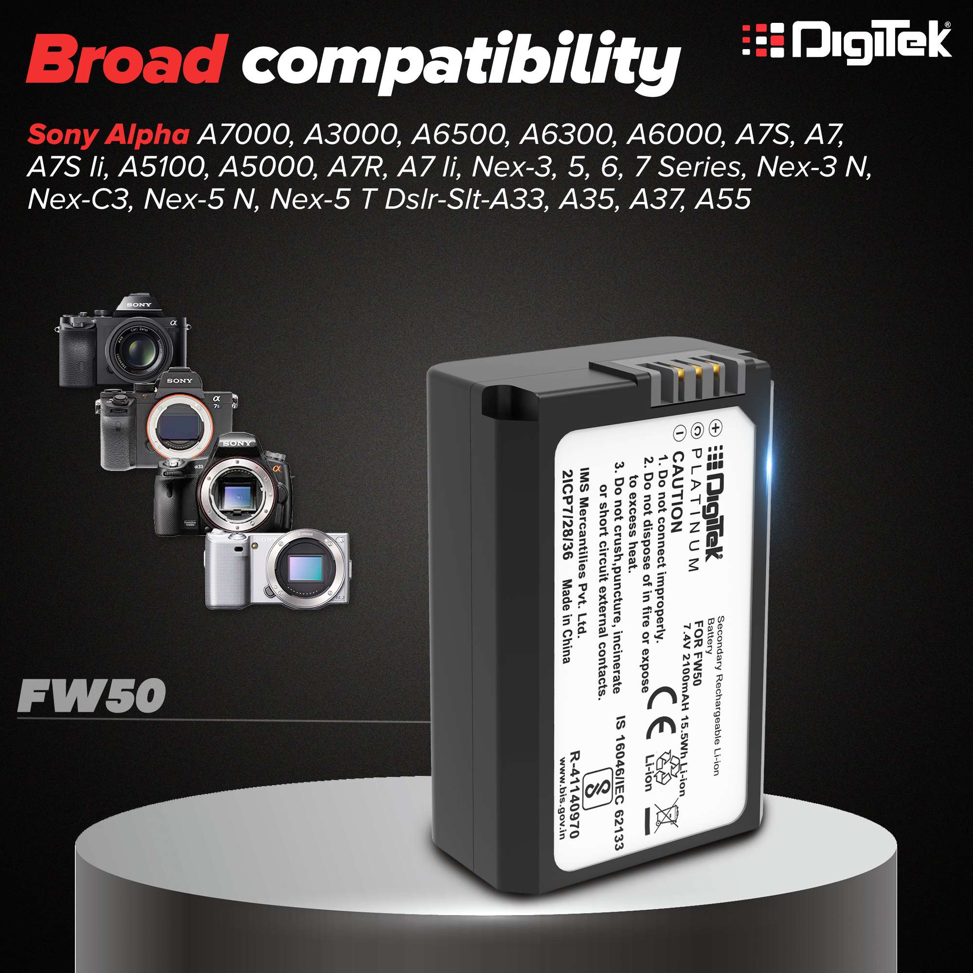 - Compatibility: Battery Is Designed For Sony Alpha A7000, A3000, A6500, A6300, A6000, A7S, A7, A7S Ii, A5100, A5000, A7R, A7 Ii, Nex-3, 5, 6, 7 Series, Nex-3 N, Nex-C3, Nex-5 N, Nex-5 T Dslr-Slt-A33, A35, A37, A55,