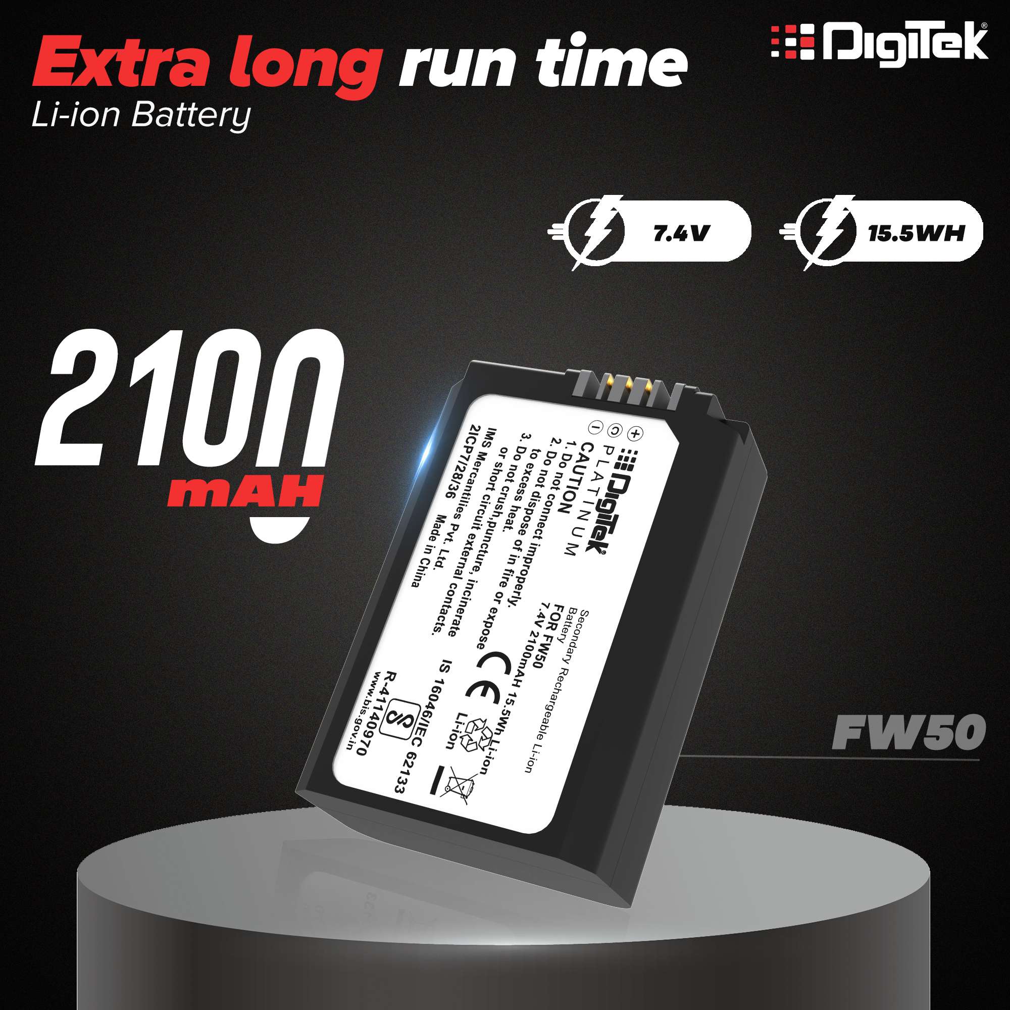Digitek PlatinumFW50 is a world-class extra power battery specially designed for Sony FW50Camera. The battery is designed with top-notch precision for 100% compatibility with the original product in an international standard leak-proof structure.