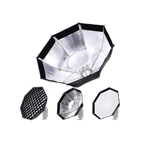 Portable softbox opens and folds up like an umbrella. Function as a diffused softbox, a beauty dish, or a gridded softbox. Help produce soft and even illumination, as well as attractive catchlight in the eyes.