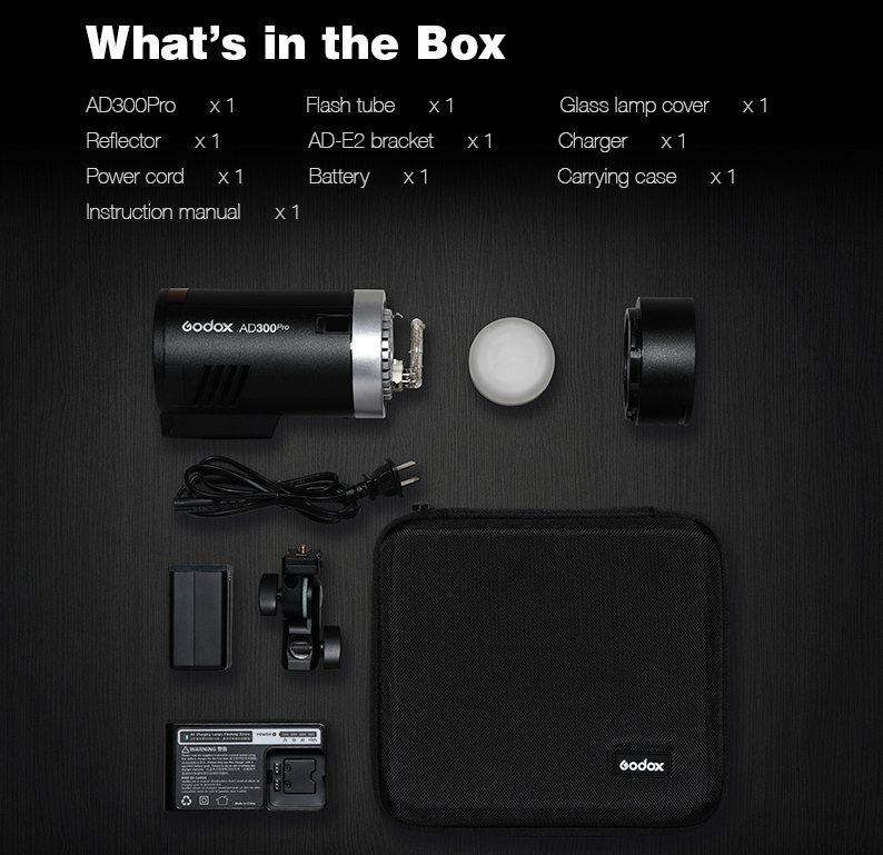 1/8000 HSS is built right into the strobe. No more receivers necessary. Fully supporting TTL auto flash, Flash Exposure Compensation, First Curtain Sync, Second Curtain Sync, Manual Flash, Multi Flash etc. The AD300 Pro works with multiple camera brands and various accessories using the appropriate adapter. The AD300 Pro allows High Speed Shooting of up to 1/8000th of a second, allowing you to catch that perfect action through beautiful crisp images with perfect lighting