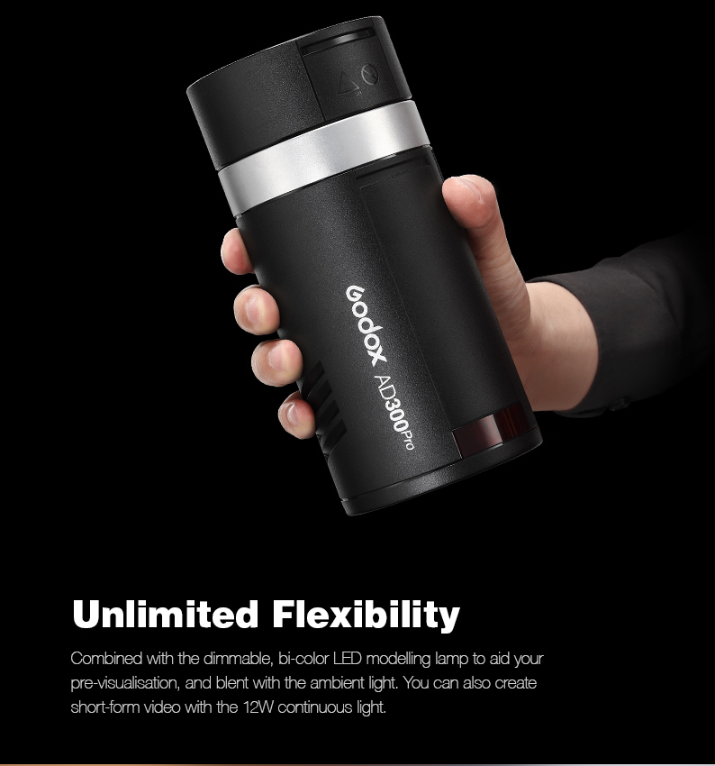 Boasting 9 power stops from 1/256-1/1 in 1/10th increments and a 10 stop 10W LED Bi-Colour modelling light. The AD300Pro allows to be fully in control with precise, delicate power adjustments.