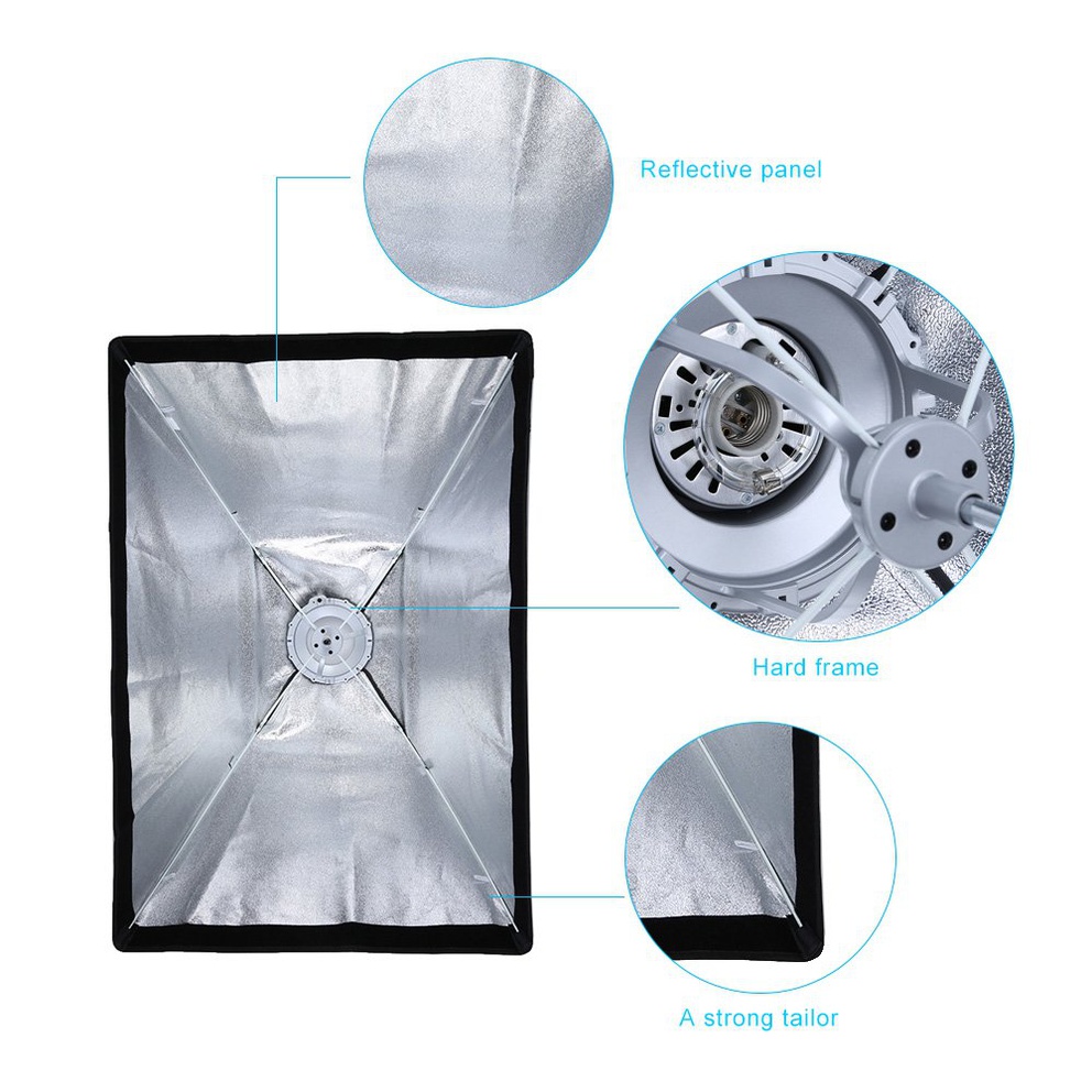 • Professional reflective fabric with precise colour temperature is tailored elaborately, hard skeleton provides enough support for soft box.