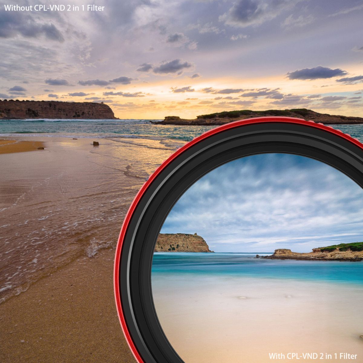 Taking the advice from most of professional photographers, the Variable ND was designed between 3 and 7 stops. All you need to do is to pull the small round lever to adjust the ND stops. If you want to use two functions at the same time, please remember to adjust the Variable ND filter firstly and then adjust the CPL filter.
