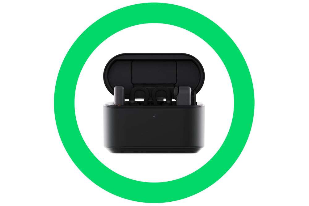 - The charging case is specifically designed to accommodate both receivers and two transmitter units. Its 1300mAh internal battery can recharge the entire system multiple times for a total battery life of 30 hours.