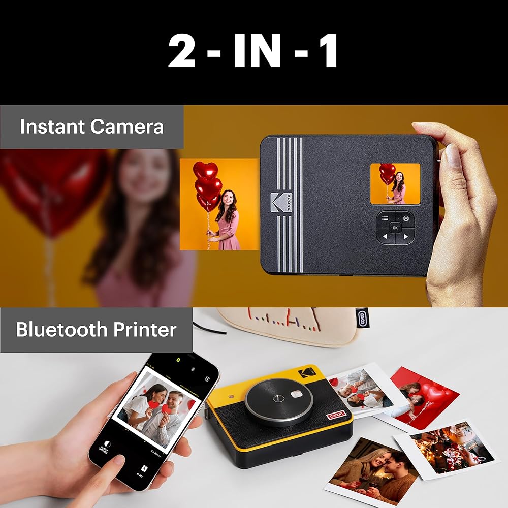 - 2-in-1 instant camera and photo printer with Bluetooth connectivity for printing from mobile devices