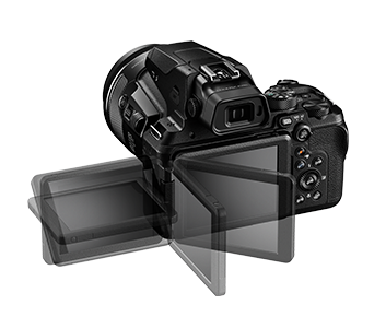 The ultra-high definition, 0.99cm (0.39″) electronic viewfinder equipped with an eye sensor enables you to shoot with precise composition, crisply and clearly. Operability is a strong point of the P950, with useful functions like the Snap-back zoom, Side zoom control and Side dial, allows for super-telephoto zoom for wild birds, hang gliders and balloons, to close distance wide-angle shooting for butterflies and flowers. These intuitive control keeps stunning optical performance at your fingertips. Creative freedom and the ability to pursue unique compositions is expanded by the inclusion of a 8.1cm (3.2″) vari-angle TFT LCD monitor equipped with an anti-reflection coating to ensure clear visibility even under direct sunlight.
