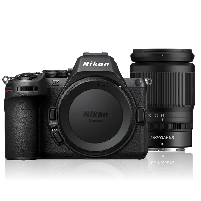 Specifications Specifications Type Display SKU VOK170XN Type Digital camera with support for interchangeable lenses Mount Type Nikon Z mount Picture Angle Full-frame / FX-Format Image Sensor Sensor Size 35.9 mm x 23.9 mm Image Sensor Type CMOS Total Pixels 25.28 million Dust-Reduction System Image sensor cleaning, Image Dust Off reference data (requires NX Studio) Image Area (pixels) [FX (36×24)] selected for image area: (L) 6048 x 4032 ( 24.4 million) (M) 4528 x 3024 ( 13.7 million) (S) 3024 x 2016 ( 6.1 million) [DX (24×16)] selected for image area: (L) 3984 x 2656 ( 10.6 million) (M) 2976 x 1992 ( 5.9 million) (S) 1984 x 1328 ( 2.6 million) [1:1 (24×24)] selected for image area: (L) 4032 x 4032 ( 16.3 million) (M) 3024 x 3024 ( 9.1 million) (S) 2016 x 2016 ( 4.1 million) [16:9 (36×20)] selected for image area: (L) 6048 x 3400 ( 20.6 million) (M) 4528 x 2544 ( 11.5 million) (S) 3024 x 1696 ( 5.1 million) Effective Pixels (Megapixels) 24.5 million Image Sensor Format Full-frame/FX-format Movie Frame size (pixels) and frame rate 3840×2160 (4K UHD): 60p/50p/30p/25p/24p 1920×1080: 120p/100p/60p/50p/30p/25p/24p 1920×1080 (slow-motion): 30p x4 (slow-motion)/25p x4 (slow-motion)/24p x5 (slow-motion) * Actual frame rates for 120p, 100p, 60p, 50p, 30p, 25p, and 24p are 119.88, 100, 59.94, 50, 29.97, 25, and 23.976 fps respectively Raw Video: [FX] 4032×2268: 30p/25p/24p [DX] 3984×2240: 30p/25p/24p * Actual frame rates for 30p, 25p, and 24p are 29.97, 25, and 23.976 fps respectively. Movie Metering TTL metering using camera image sensor Time-Lapse Movie Yes Movie Active D-Lighting Extra high, High, Normal, Low, and Off Movie Audio Built-in stereo or external microphone can be used; sensitivity adjustable; attenuator, frequency response, and wind noise reduction functions Movie Audio Recording Format Linear PCM (48 KHz, 24 bit, for videos recorded in NEV or MOV format), AAC (48 KHz, 16 bit, for videos recorded in MP4 format) Movie Video Compression N-RAW (12 bit), H.265/HEVC (8 bit/10 bit), H.264/AVC (8 bit) Movie File Format NEV, MOV, MP4 Other options for video recording Time-lapse video recording, electronic vibration reduction, time codes, N-Log and HDR (HLG) video, wave-form display, red REC frame indicator, video recording display zoom (50%, 100%, 200%, and 400%), extended shutter speeds (modes S and M), and dual-format (proxy-video) recording for RAW video; option to view video recording info available via i menu; Hi-Res Zoom File System File Format Still Images NEF (RAW): 14 bit; choose from lossless compression, high efficiency (high), and high efficiency options JPEG: JPEG-Baseline compliant with fine (approx. 1 : 4), normal (approx. 1 : 8), or basic (approx. 1 : 16) compression; size-priority and optimal-quality compression available HEIF: Supports fine (approx. 1 : 4), normal (approx. 1 : 8), or basic (approx. 1 : 16) compression; size-priority and optimal-quality compression available NEF (RAW)+JPEG: Single photograph recorded in both NEF (RAW) and JPEG formats NEF (RAW)+HEIF: Single photograph recorded in both NEF (RAW) and HEIF formats Picture Control Auto, Standard, Neutral, Vivid, Monochrome, Flat Monochrome, Deep Tone Monochrome, Portrait, Rich Tone Portrait, Landscape, Flat Creative Picture Controls (Dream, Morning, Pop, Sunday, Somber, Dramatic, Silence, Bleached, Melancholic, Pure, Denim, Toy, Sepia, Blue, Red, Pink, Charcoal, Graphite, Binary, Carbon); selected Picture Control can be modified; storage for Custom Picture Controls * Note: Choice of Picture Controls is restricted to Standard, Monochrome, and Flat when HLG is selected for tone mode during still photography. File System DCF 2.0, Exif 2.32, MPEG‑A MIAF Storage Media SD, SDHC (UHS-II compliant), SDXC (UHS-II compliant) Card Slot 2 Secure Digital (SD) cards Either card can be used for overflow or backup storage, for separate storage of NEF (RAW) and JPEG or HEIF pictures, or for storage of duplicate JPEG or HEIF pictures at different sizes and image qualities; pictures can be copied between cards. Viewfinder Viewfinder 1.27-cm/0.5-in. approx. 3690k-dot (Quad VGA) OLED electronic viewfinder with color balance and auto and 18-level manual brightness controls Eye Sensor Automatically switches between monitor and viewfinder displays Compatible Lenses Z mount NIKKOR lenses F mount NIKKOR lenses (mount adapter required; restrictions may apply) Viewfinder Diopter Adjustment -4 to +2 m-1 Viewfinder Eyepoint 21 mm (-1.0 m-1; from rearmost surface of viewfinder eyepiece lens) Viewfinder Magnification Approx. 0.8× (50 mm lens at infinity, -1.0 m-1) Viewfinder Frame Coverage Approx. 100% horizontal and 100% vertical Shutter Shutter Type Electronically-controlled vertical-travel focal-plane mechanical shutter; electronic front-curtain shutter; electronic shutter Frame Advance Rate ¹⁄₈₀₀₀ to 30 s (choose from step sizes of ¹⁄₃, ¹⁄₂, and 1 EV, extendable to 900 s in mode M), Bulb, Time Shutter Release Modes Single frame, continuous low-speed, continuous high-speed, continuous high-speed (extended), high-speed frame capture + with Pre-Release Capture, Self-timer Flash Sync Speed Flash synchronizes with shutter at speeds of ¹⁄₂₀₀ s or slower; faster sync speeds are supported with auto FP high-speed sync Continuous Shooting Options Up to 30 fps Continuous low-speed: Approx. 1 to 7 fps Continuous high-speed2: – Approx. 7.8 fps (when the shutter type is set to [Auto] or [Mechanical shutter]) – Approx. 9.4 fps (when the shutter type is set to [Electronic front-curtain shutter]) – Approx. 10 fps (when silent mode is set to [ON]) Continuous high-speed (extended)2: – Approx. 14 fps – Approx. 15 fps (when silent mode is set to [ON]) High-speed frame capture + (C15): Approx. 15 fps High-speed frame capture + (C30): Approx. 30 fps 1. Maximum frame advance rate as measured by in-house tests. 2. When using an image quality setting other than NEF (RAW) or NEF (RAW) +. Self-timer 2 s, 5 s, 10 s, 