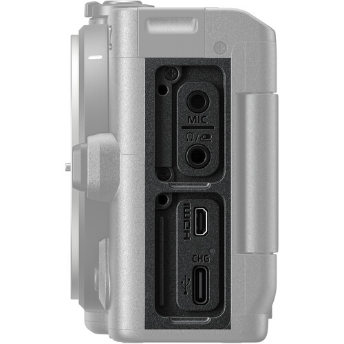 The camera records to a CFexpress Type B card slot that is accessed through the battery door to keep the camera compact and mobile, while a microSD card slot is available for proxy recording. There is also a micro-HDMI output that allows you to output to a display or recording device.