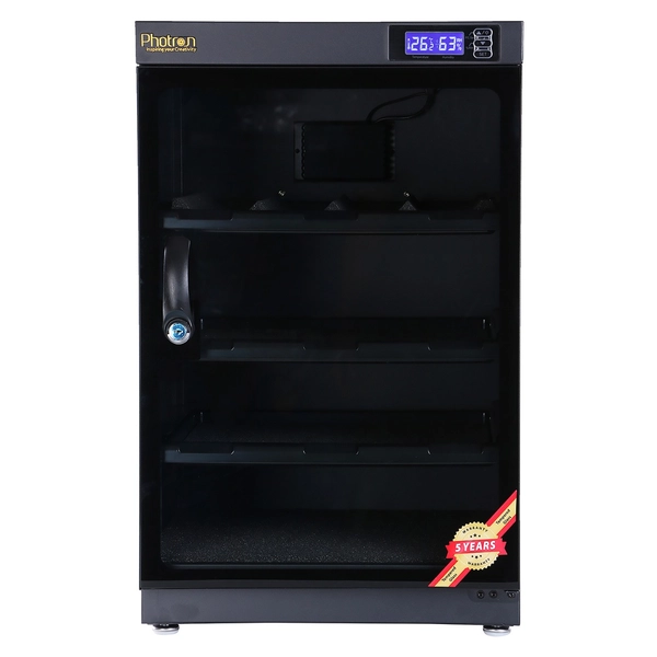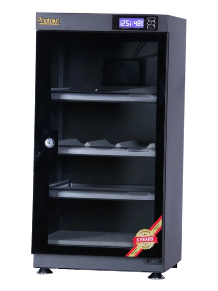 Protect your lenses, photographic and optical equipment, mobile electronics, and other valuable accessories from excessive moisture, dirt, and dust with the Photron Electronic Dry Cabinet. The cabinet’s fast-acting TE Cooling Wafer regulates the interior’s relative humidity to help prevent fungus and corrosion that can damage your gear. Humidity adjustments take place over a 1- to 3-hour period.