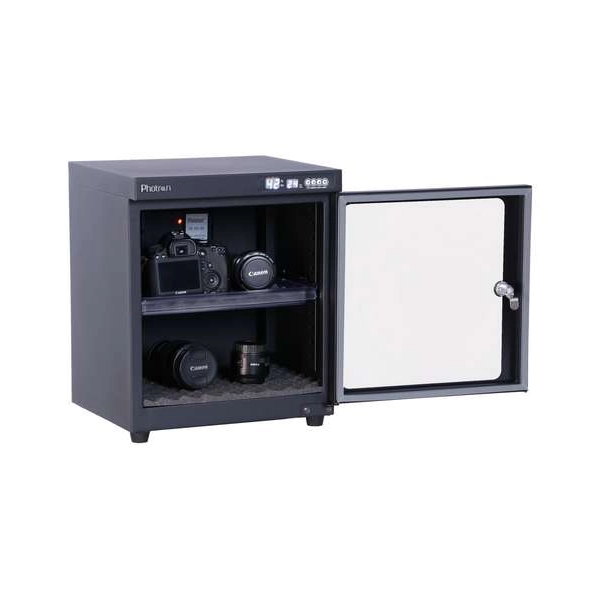 Protect your lenses, photographic and optical equipment, mobile electronics, and other valuable accessories from excessive moisture, dirt, and dust with the Photron Electronic Dry Cabinet. The cabinet’s fast-acting TE Cooling Wafer regulates the interior’s relative humidity to help prevent fungus and corrosion that can damage your gear. Humidity adjustments take place over a 1- to 3-hour period.