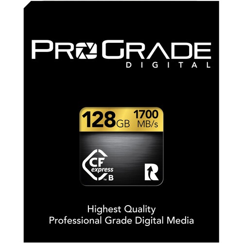 the 128GB CFexpress 2.0 Gold Memory Card from ProGrade Digital provides read speeds of up to 1700 MB/s, which helps to quickly offload content to your computer, and write speeds of up to 1400 MB/s. Additionally, the Gold’s minimum write speed is guaranteed not to drop below 140 MB/s, which allows for the uninterrupted recording of a wide variety of codecs, including raw 4K video, 4K and 6K ProRes 4444, 4K, 6K, and 8K ProRes 422 HQ, and more. This card is resistant to temperature extremes, shock, vibration, and X-rays, and is also backward compatible with select XQD cameras that adopt firmware to enable CFexpress. This card also takes advantage of an NVMe host controller interface and backward compatibility with CFexpress 1.0.