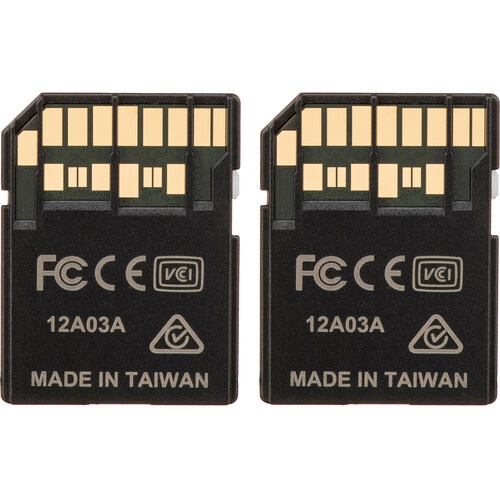 The 128GB UHS-II SDXC Memory Card (2-Pack) from ProGrade Digital features a storage capacity of 128GB per card and takes advantage of the UHS-II bus to support maximum read speeds of 300 MB/s and maximum write speeds of 250 MB/s. This card has also been designed with the V90 Video Speed Class rating, which guarantees minimum write speeds of at least 90 MB/s, allowing the card to be used in DSLRs, mirrorless cameras, camcorders, and digital cinema cameras that produce rich data streams, including 6K, 5K, 4K, UHD 4K, and high bit rate MPEG-4 video. It is also well-suited for raw photos and rapid-fire bursts.