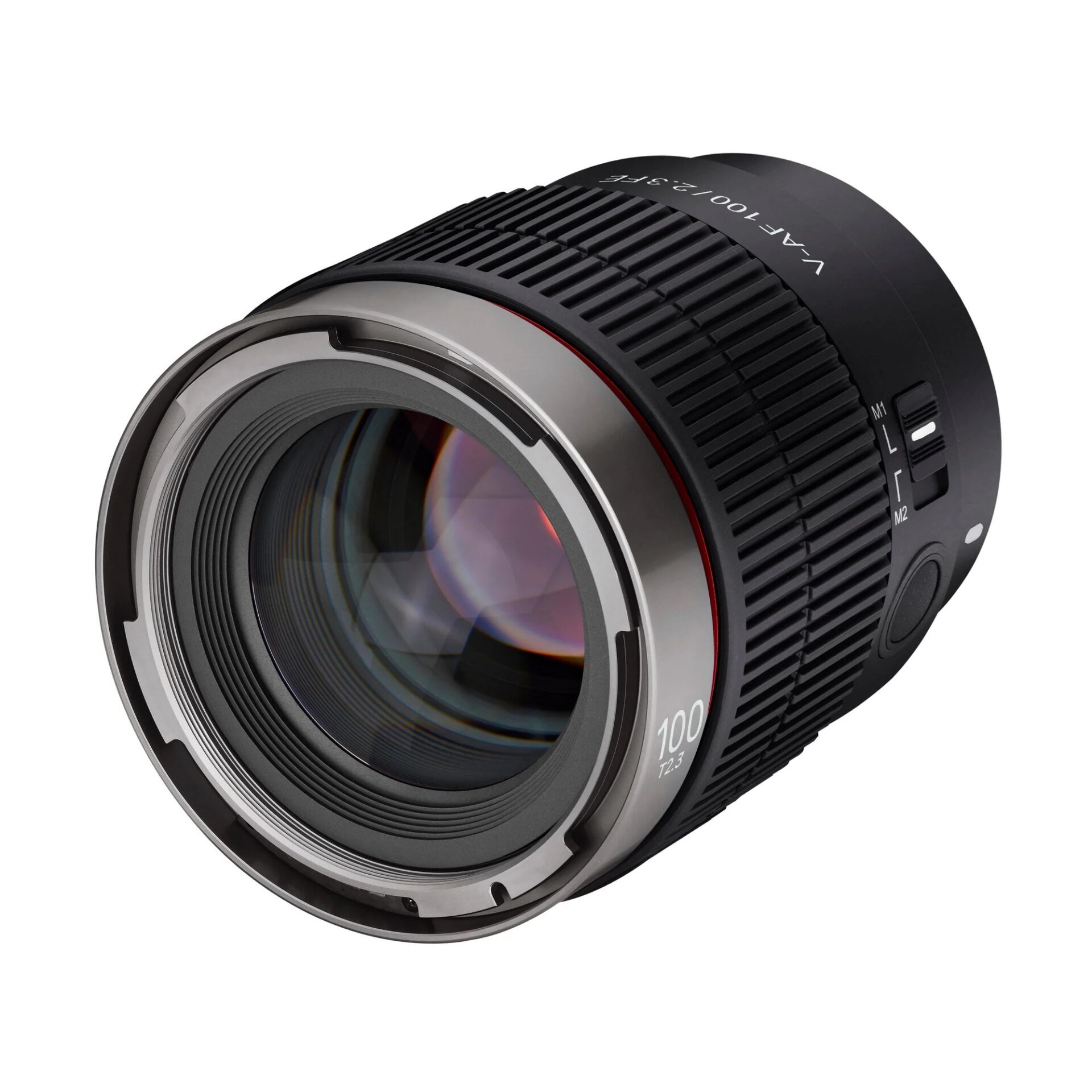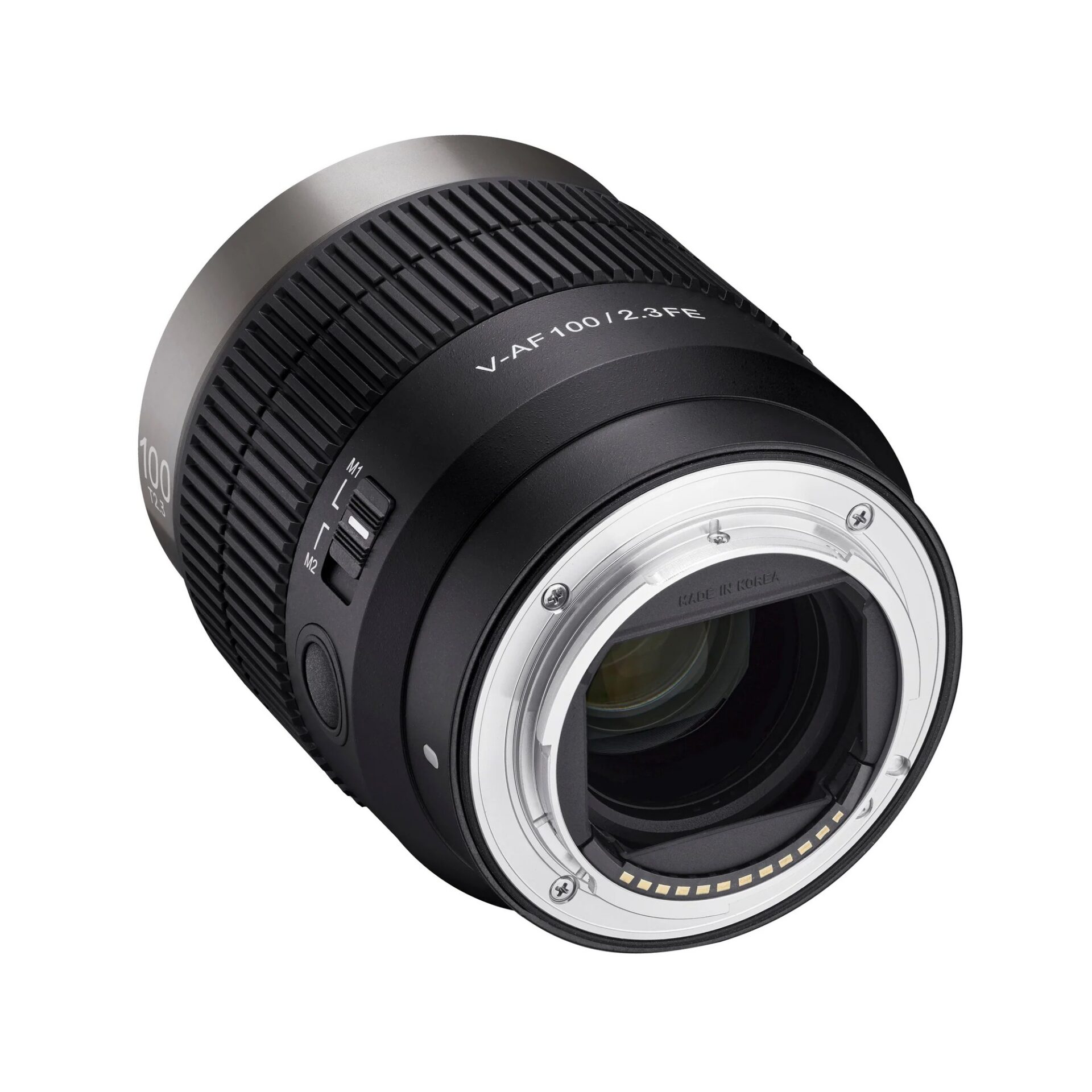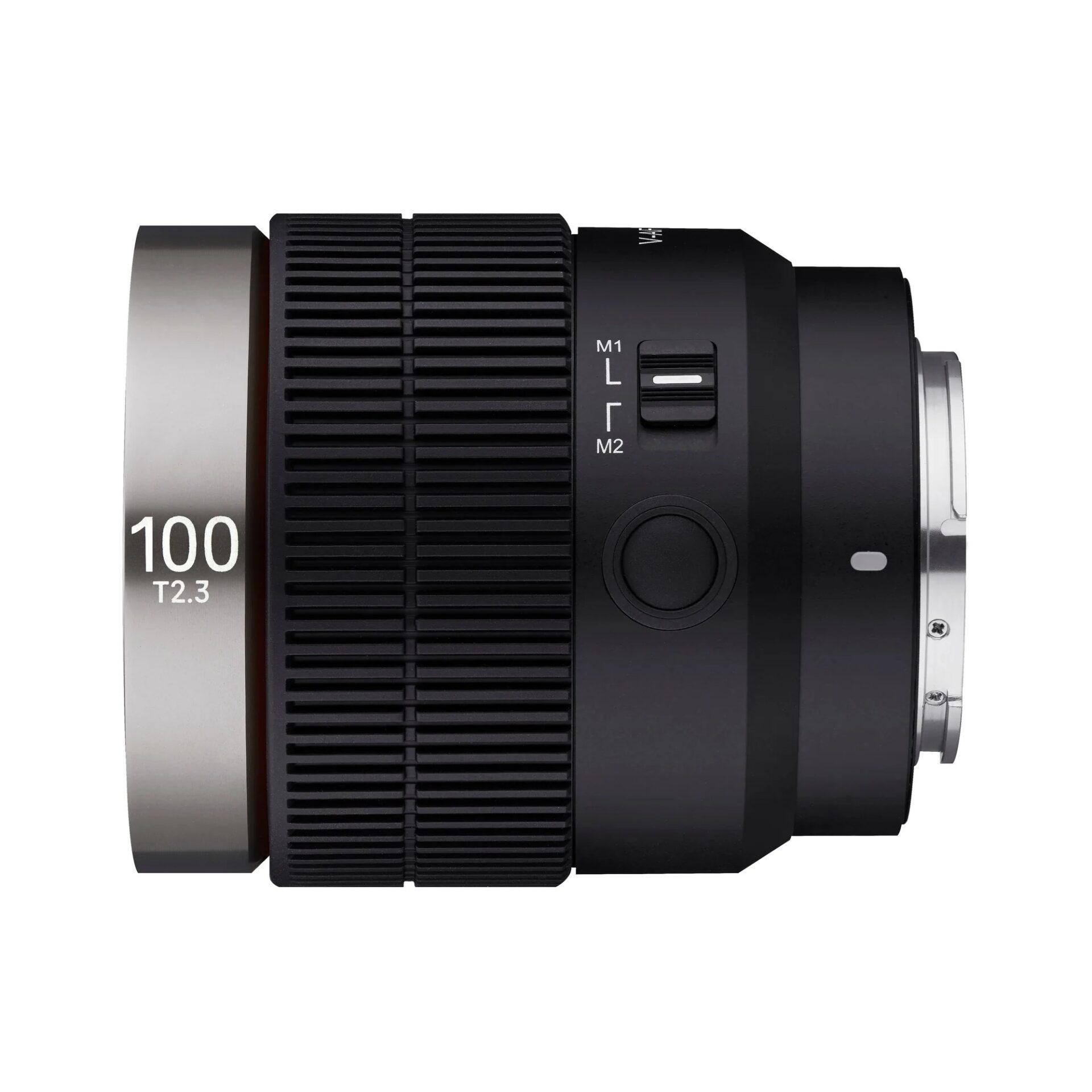 Add an ultralightweight, ultracompact cinema lens to your kit with the Cine AF 100mm T2.3 FE Lens from Samyang. The lens has a Sony E-mount and covers up to 8K full-frame sensors, and it features a multicoating to protect the lens from glare and a 9-blade iris that provides a soft, natural bokeh and dramatic cinema look. Its autofocus function makes focusing easy when using the lens on a gimbal rig or a drone, and it features a switch that can save your focus settings when switching between manual and autofocus. The lens also features a tally LED on the front that allows you to see whether the camera is recording using its electronic contacts.
