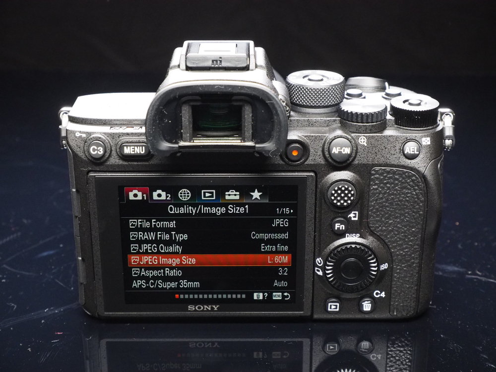 35 mm full-frame L: 9504 x 6336 (60 M), M: 6240 x 4160 (26 M), S: 4752 x 3168 (15 M) APS-C L: 6240 x 4160 (26 M), M: 4752 x 3168 (15 M), S: 3120 x 2080 (6.5 M)