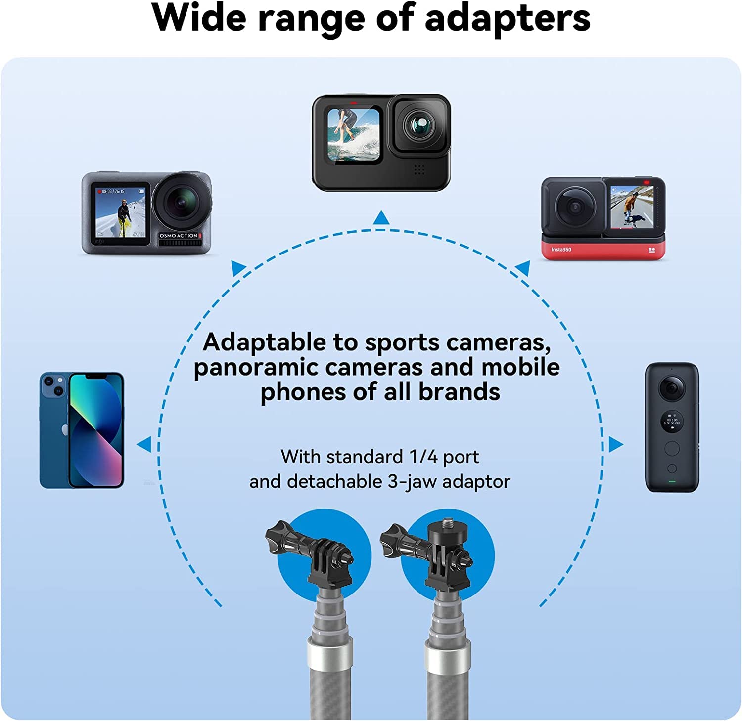Reach for that selfie or stabilize your camera for smoother videos with the 3.9′ Carbon Fiber Selfie Stick from TELESIN. This lightweight yet durable carbon fiber selfie stick weighs only 5 oz and extends from 12.6 to 47.2″ in five stages.