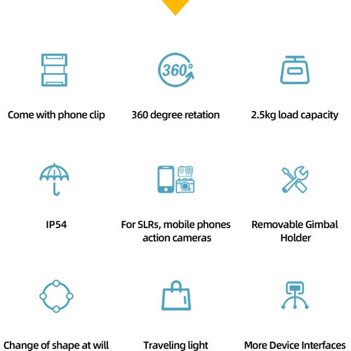 Connections Camera Mount: 1 x 1/4″ Phone Holder: 1 x Cold Shoe Detachable Head: 1 x 1/4″