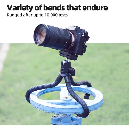 Exceedingly adaptable, the Flexible Octopus Tripod with 2-in-1 Mount from TELESIN has flexible legs that can operate like a normal tripodor be bent to accommodate uneven surfaces or wrap around poles, branches, and other objects for interesting camera angles. The 2-in-1 mount looks like a standard camera mount with a 1/4″ threaded screw, but it can also unfold to reveal a smartphone grip with a built-in cold shoe.