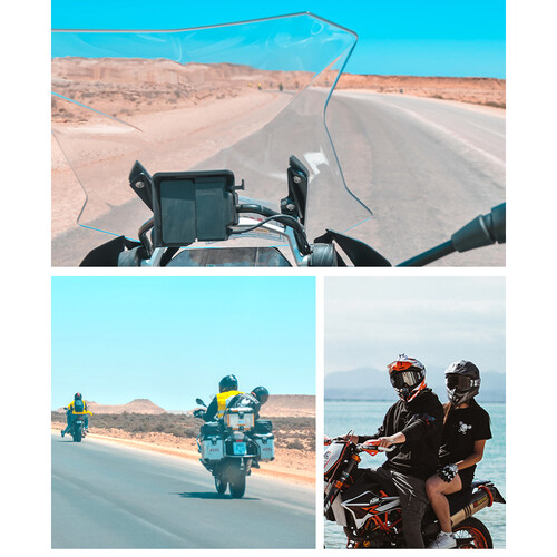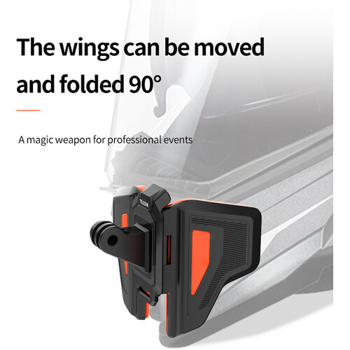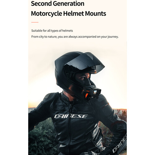 Secure this Motorcycle Helmet Chin Mount from TELESIN to your angular off-road or rounded full helmet to capture dynamic first-person point of view footage of your next motorcycle or dirt bike excursion. The main mount is a J-hook shape and folds up to 180° to fit flush to the chin of your helmet. An included hook-and-loop strap threads through the slots on the mount to prevent it from moving.