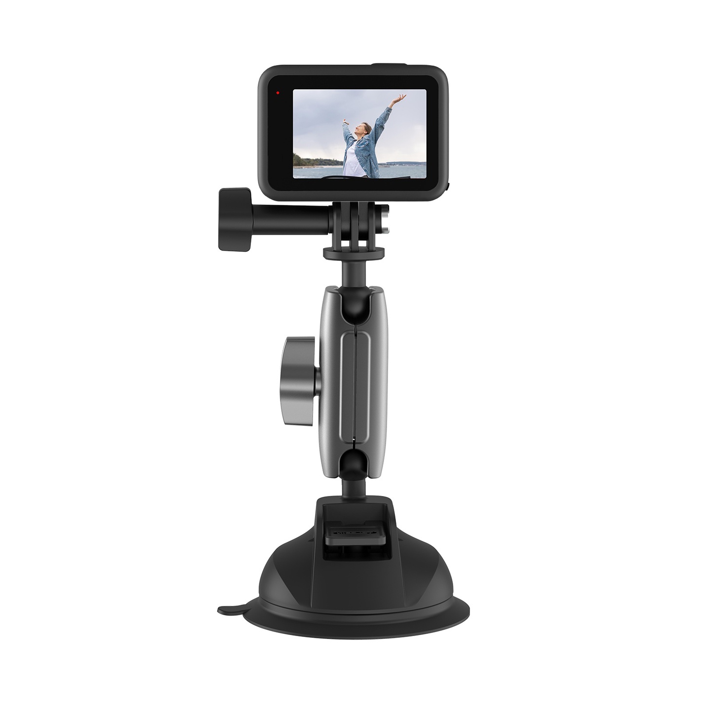 Compatible with most action cameras. | Provide a broad range of motion and stability,can be attached securely on a clean and flat,non-porous surface such as car window, dashboard or boats,fish tanks | Attach your GoPro camera with this industrial strength suction cup to cars, boats, motorcycles and more high-impact sports | Included long and short extension arms allow for ultra compact mounting,do not use it for impact sports like – skiing, surfing, etc
