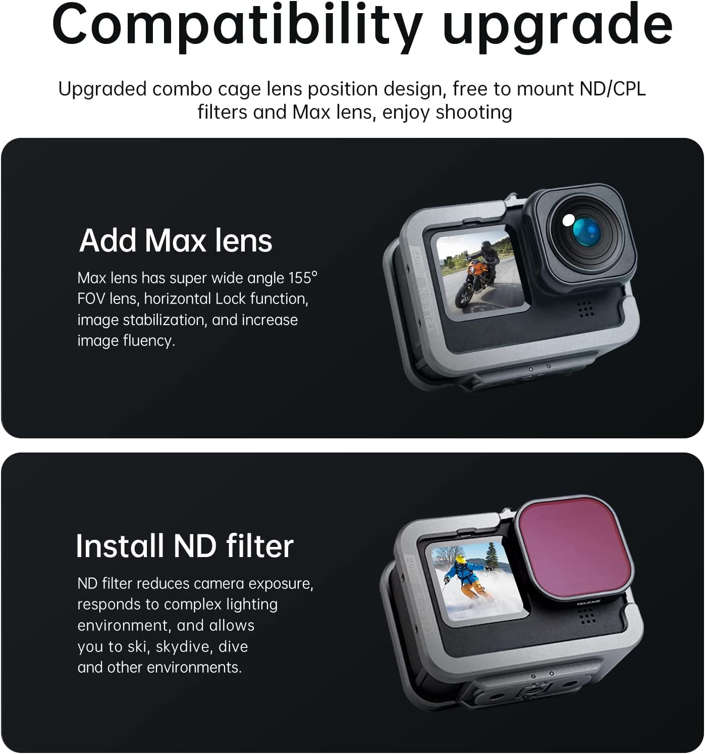 5.Support vertical and horizontal shooting. 6.Fits with camera when mounted with a ND/CPL/Max Lens Mod on. 7. With clod shoe mount all-in-one design, more convenient to operate