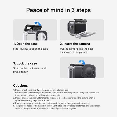 The lens is designed to capture high-quality imaging while maintaining an efficient level of scratch resistance, and the high-transparency case retains up to 95% light transmittance. The interior frame has an elastic rubber seal to prevent water from seeping in.