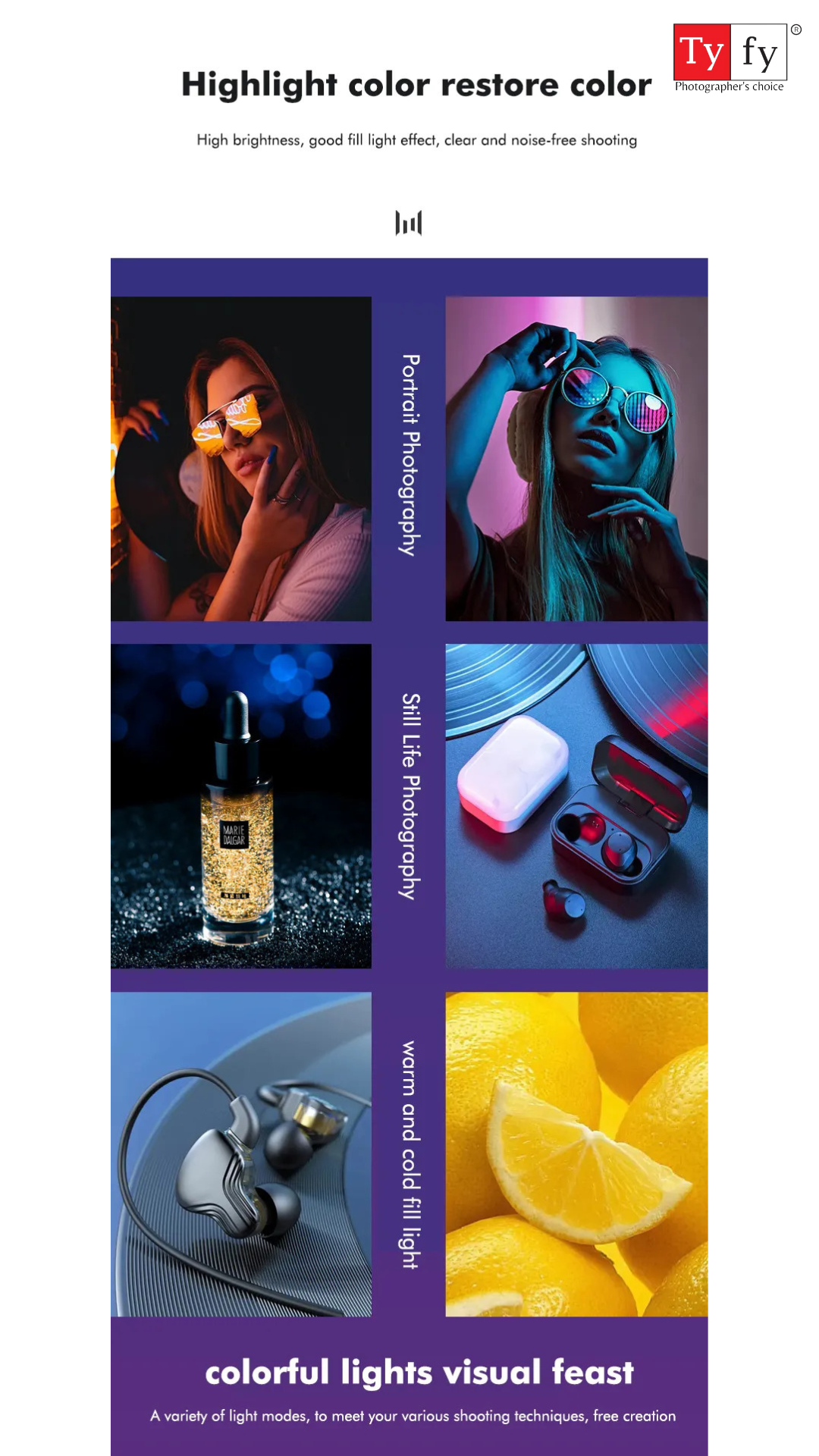 - Suitable for photography and videography where the light is not enough, outdoor lighting at dark environment and handheld light for concerts, magic show, advertisement photography, etc.