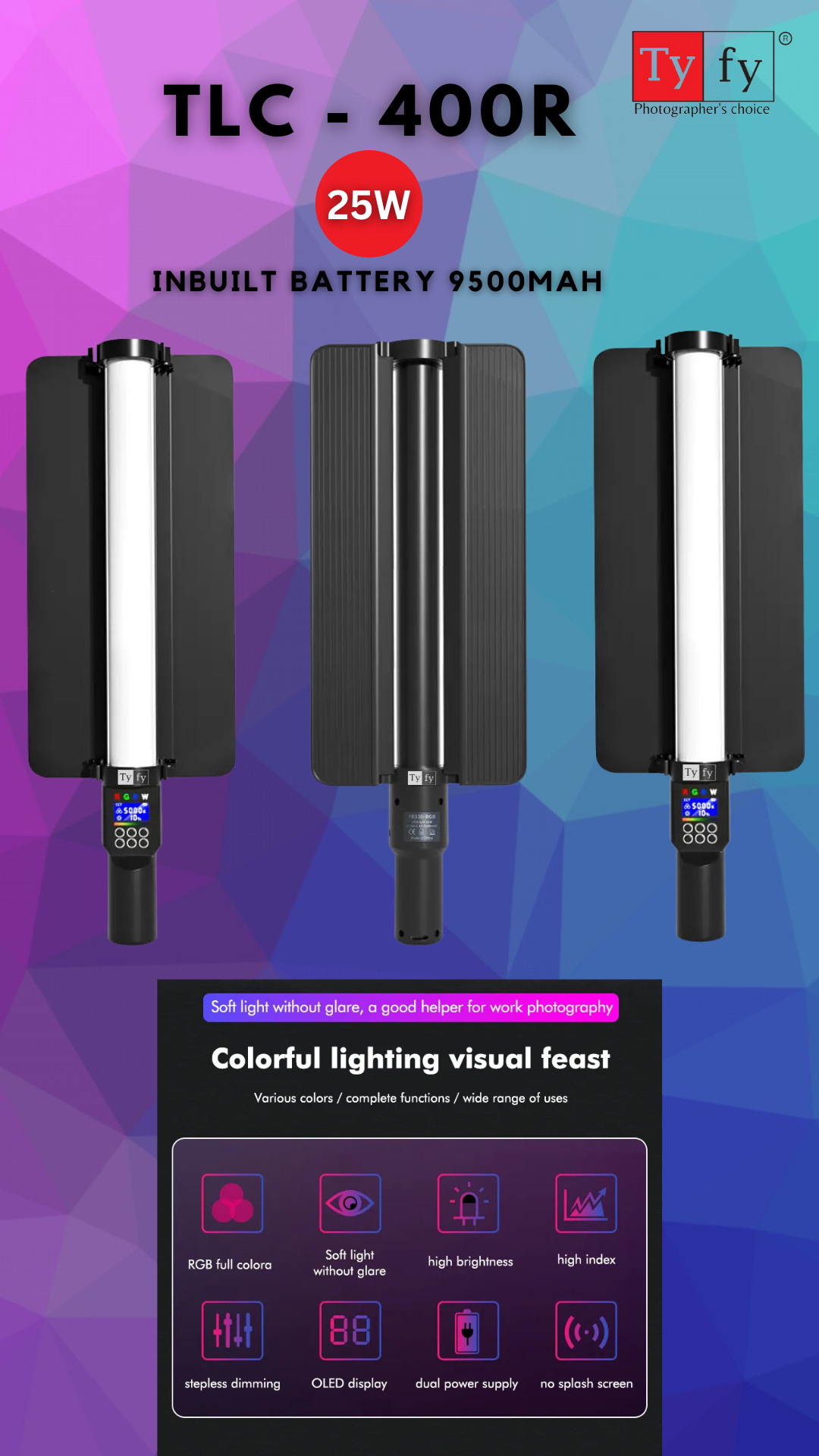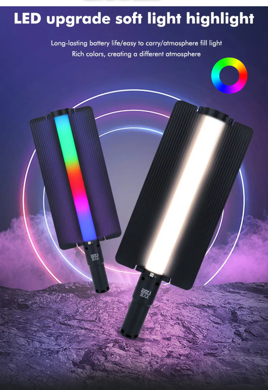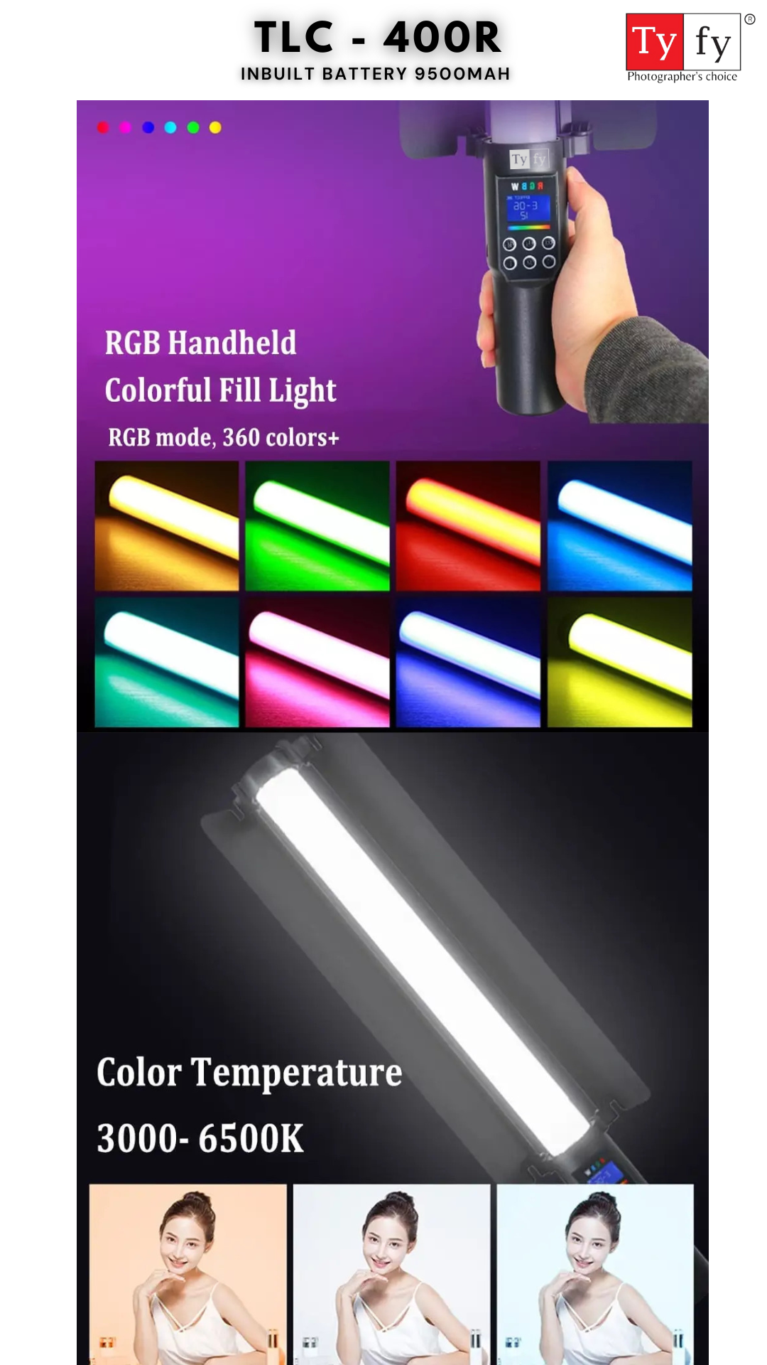 - [Rechargeable]RGB LED Photography Lighting with built-in 9500mAh large-capacity lithium battery.