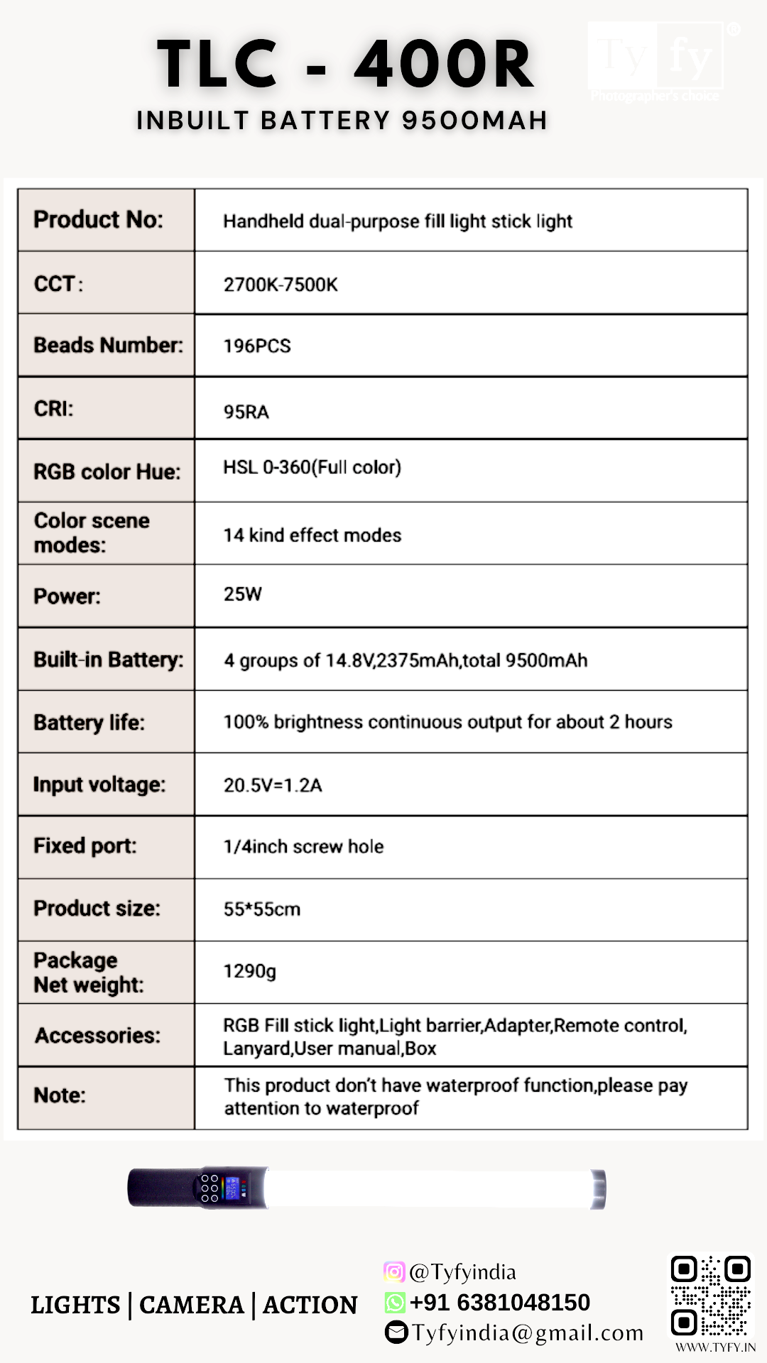 Main Features Of TyFy TLC-400R RGB Stick Light