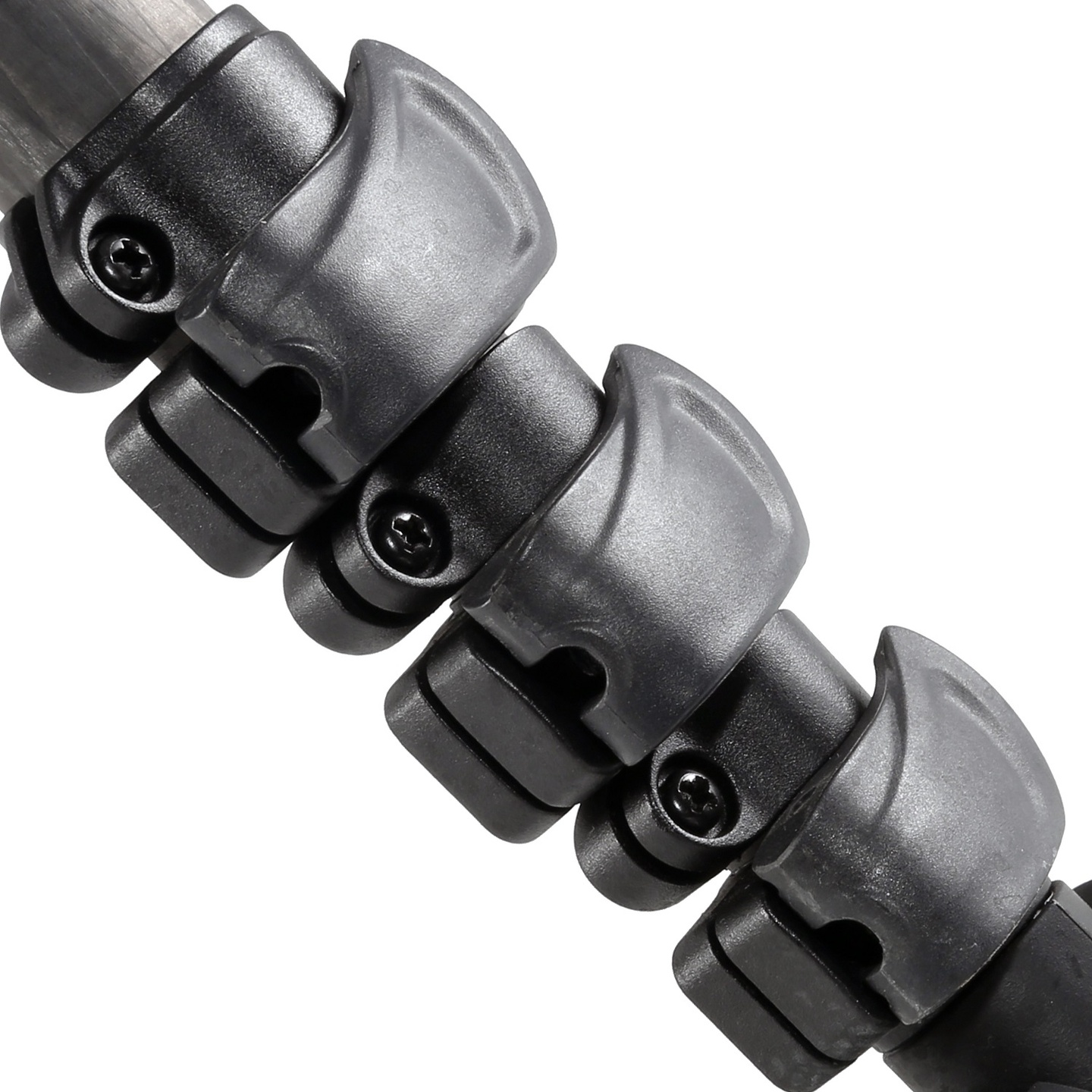 The tripod features a multi-angle center column system that allows you to move the central column from 0 to 180-degree angles in variable vertical and horizontal positions. This makes macro photography and unique angle shots a breeze. Its Instant Swivel Stop-n-Lock (ISSL) System securely re-positions the center column in one simple movement, while maintaining the tripod’s stability. When the center column is set in an angled position, a quick-adjustment lever lock makes pivoting the center column simple: flip the lock open, rotate the column to the desired position, and flip the lock closed. A ballast hook on the bottom of the center column allows you to hang a weight, adding stability to the tripod. A bubble level helps ensure your camera is even with the horizon.