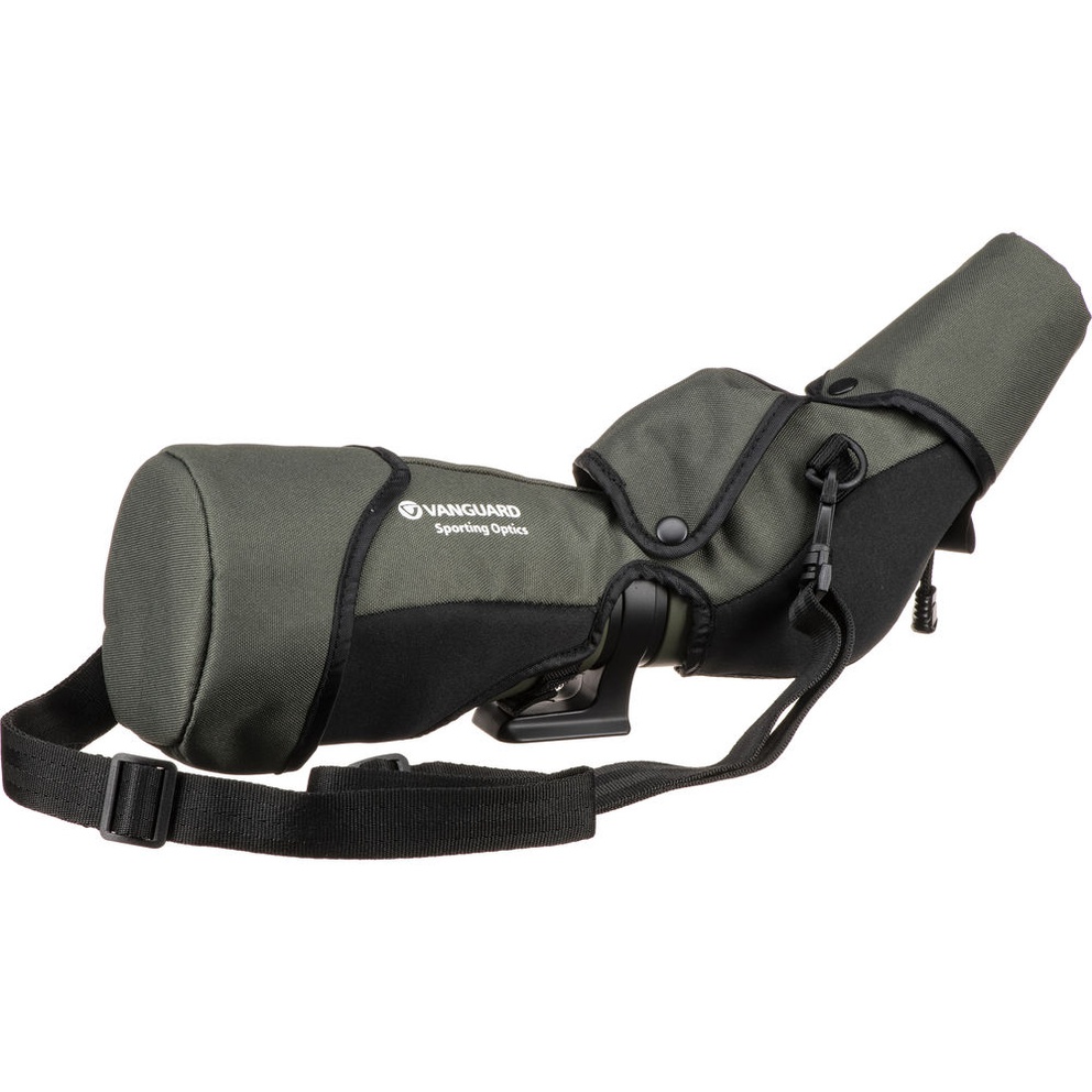 The Endeavor XF spotting scope boasts excellent optical viewing for nature enthusiasts and hunters. It features a rubber armored magnesium body and is waterproof submersible, nitrogen filled and fog proof. The lenses are all fully multi-coated to ensure optimum light transmission and feature a phase-coated BAK4 roof prism. The Endeavor XF 80A comes with a 80mm objective lens and angled eyepiece with 20-60x zoom magnification. It features an extendable rubber covered eyecup and boasts impressive eye relief even at the highest zoom settings. It also provides a very impressive field of view. A built-in sunshield is included to eliminate glare in direct sunlight and it includes a padded raincoat with sling for carry and protection. Endeavor XF is equipped with a large smooth focusing wheel for quick focusing adjustments. The Endeavor XF mounts directly to Vanguard tripod heads (and others) that are equipped with the universal mounting plate without the use of a quick shoe. The tripod mount on the angled scope rotates to give optimum viewing angles in a variety of situations such as bench shooting and use with a window mount.