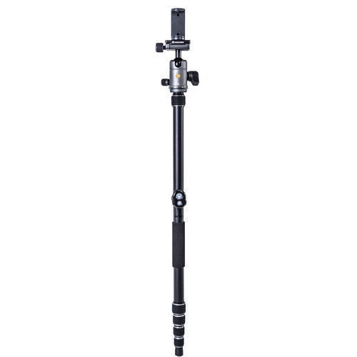 The Vanguard VEO 3 GO 265HAB is a compact aluminum travel tripod with an Arca-Swiss-compatible ball head, a leg that converts to a monopod (which can double as a selfie/vlogging stick), a smartphone adapter, and a Bluetooth remote shutter trigger, offering maximum versatility for mirrorless camera kits, DSLR camera kits, and even smartphones.