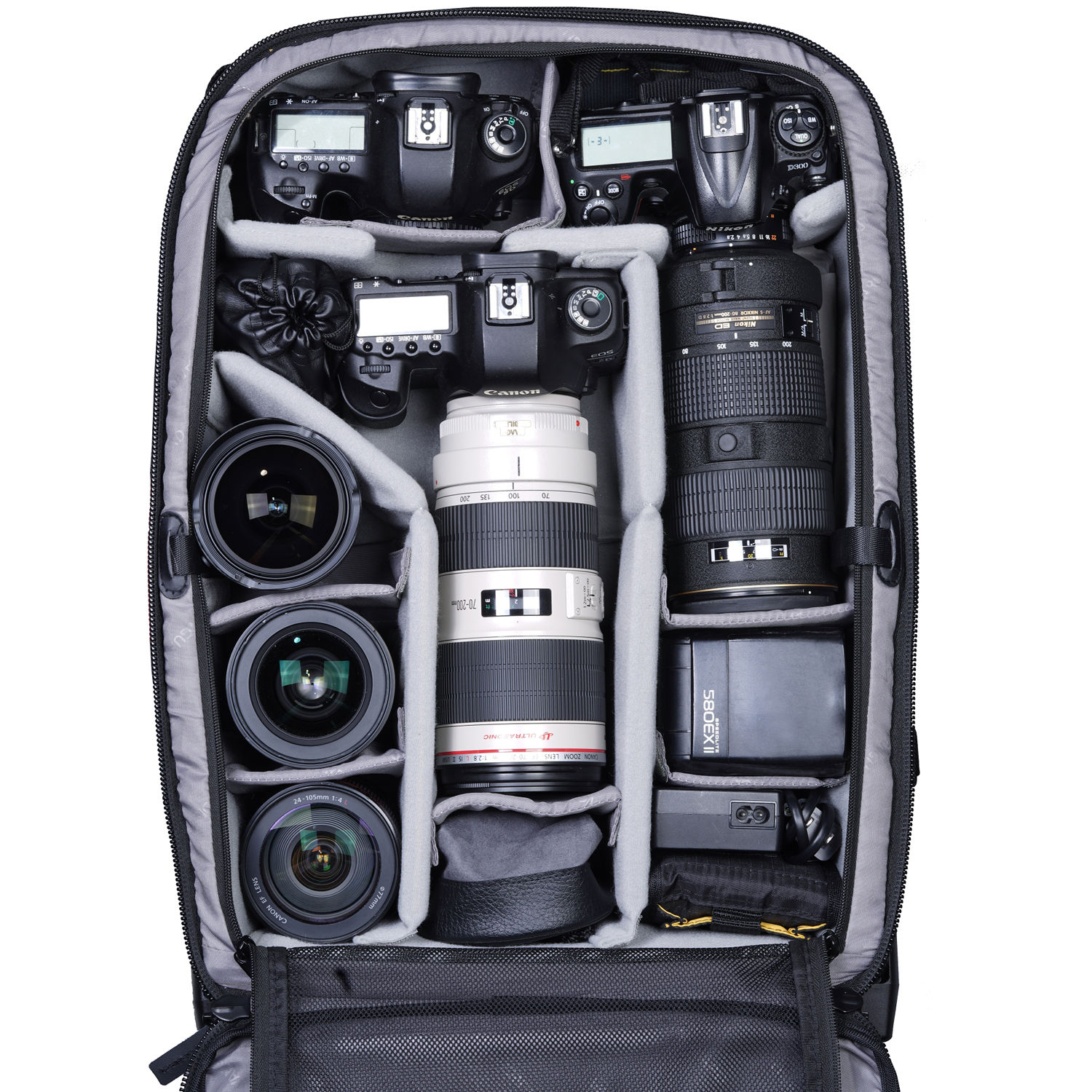 - Holds up to two tripods – with a side tripod pocket and additional top straps