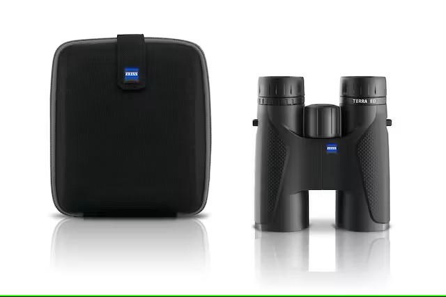 With its compact and attractive design as well as a nearly indestructible casing with perfect ergonomics, the ZEISS Terra ED 8×42 is the ideal all-around set of binoculars. With 8x magnification, the Terra ED 8×42 offers you both large fields of view and steady images. The compact design and the large lens diameter are optimal for occasional birdwatching.