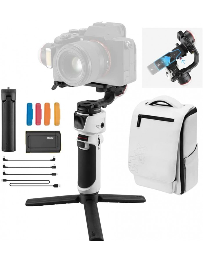 Get rid of the hefty body, Zhiyun Crane M3 is as tiny as a bottle of water. But the upgraded motors with strong torque offer stable movements and filming with cameras in different sizes; Pioneering built-in LED fill light for reducing image noise. Shooting in dark or dim light is favored by the adjustable color temperature and brightness, which sharpens the image; All-new full-color touch screen with advanced UI design and intuitive interface. The gimbal is tiny and portable like a smartphone that you can operate with just one hand at ease, also M3 Upgraded quick release system with a general quick release plate for easier balancing, assembly, and disassembly. Locks with transverse palm-rejection design to protect cameras while ensuring efficiency;