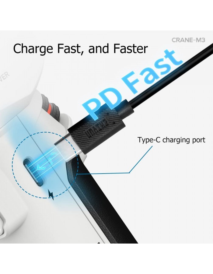*Supports PD Fast Charge protocol. Supports a maximum of 12W wired fast charge. The data is gathered from internal experiments of ZHIYUN laboratories. Under different scenarios, data is different to some extent.