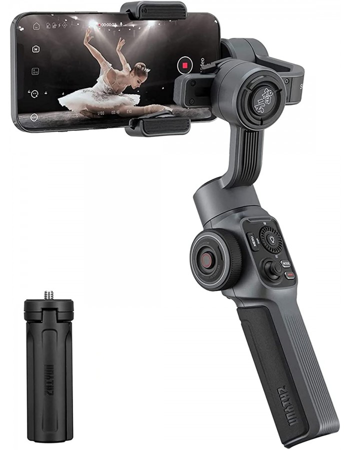 Zhiyun Smooth 5 will be everything you love about filming with your smartphone. The 3-axis design allows movements in all angles to be amazingly smooth, even in extreme angles. Intuitive control panel partnering with ZY Cami makes every shot a breeze toward professional level