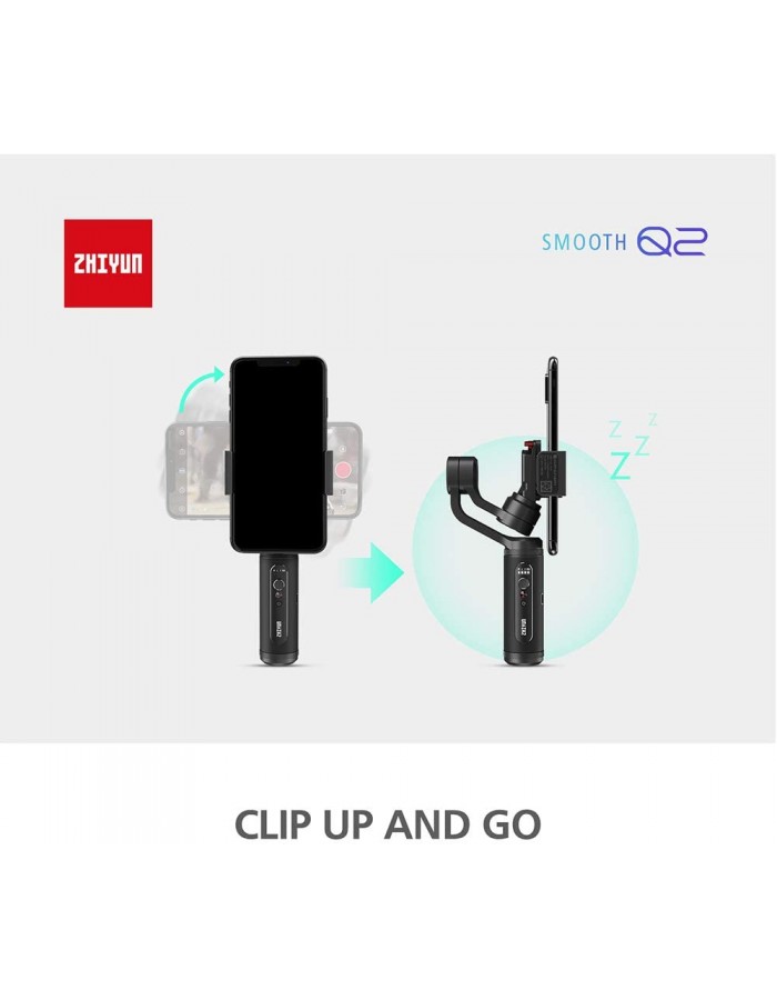 - 【Quick Release Clip】Utilizing the quick release latch design, SMOOTH-Q2 is able to transform your smartphone into a professional camera within a split. Providing an easy transition between standby mode and shooting mode. Smooth-Q2 does not require any re-balancing when the clip is re-attached back.