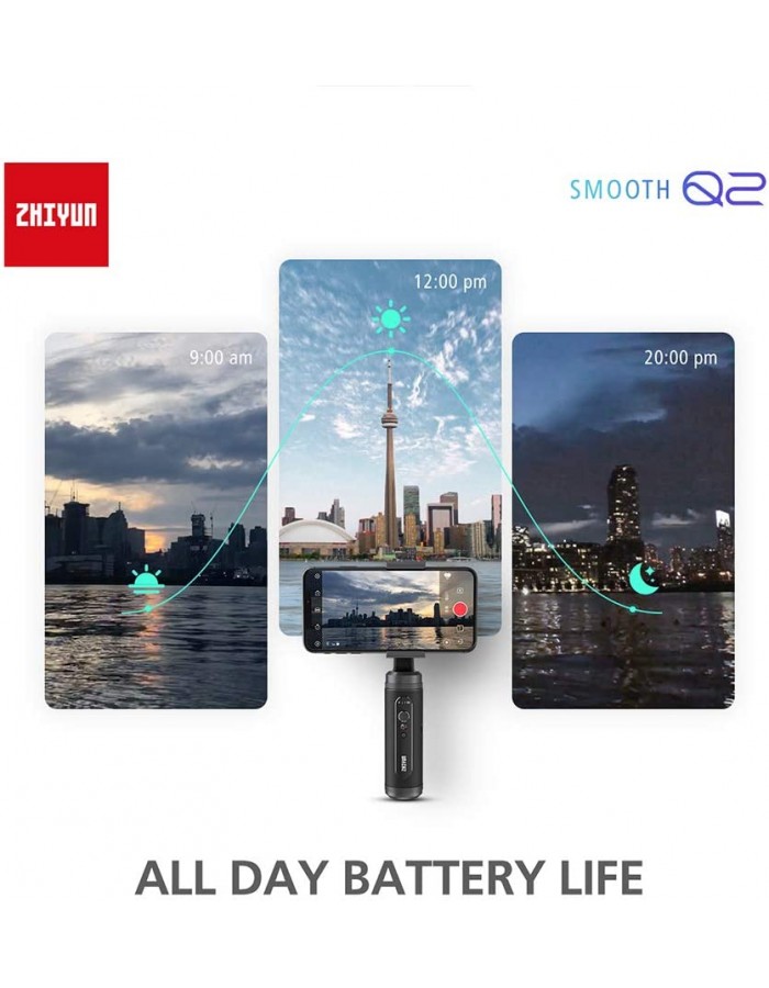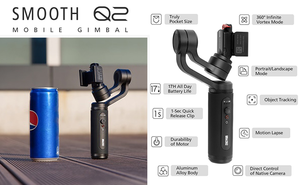 - 【Reach More Creativity】Smooth Q2 supports 360 degrees of rotation and has 3-axis stabilization, containing a Tilt motor, a Roll motor, and a Pan motor. Unleash your artistic side with SMOOTH-Q2 such as timelapse, vertigo shot, object tracking, and panorama, etc.