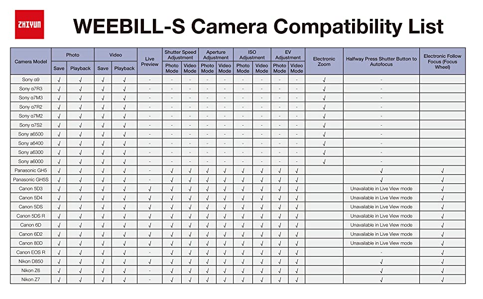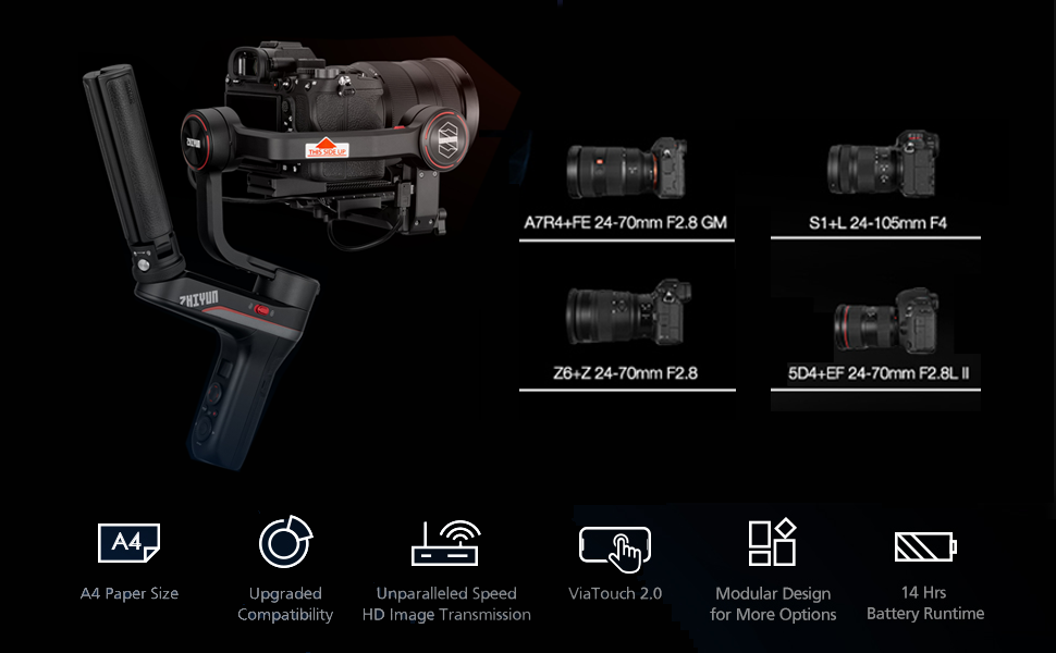 - Tiny but Mighty: Thanks to new High-precision software algorithms and more effective motors, Webill S can be with normal DSLR or Mirrorless cameras and lens set like Canon 5D Mark iii with Canon EF 24-70mm f2.8, or Sony a7 iii with Sony EF 24-70mm f2.8 GM lens